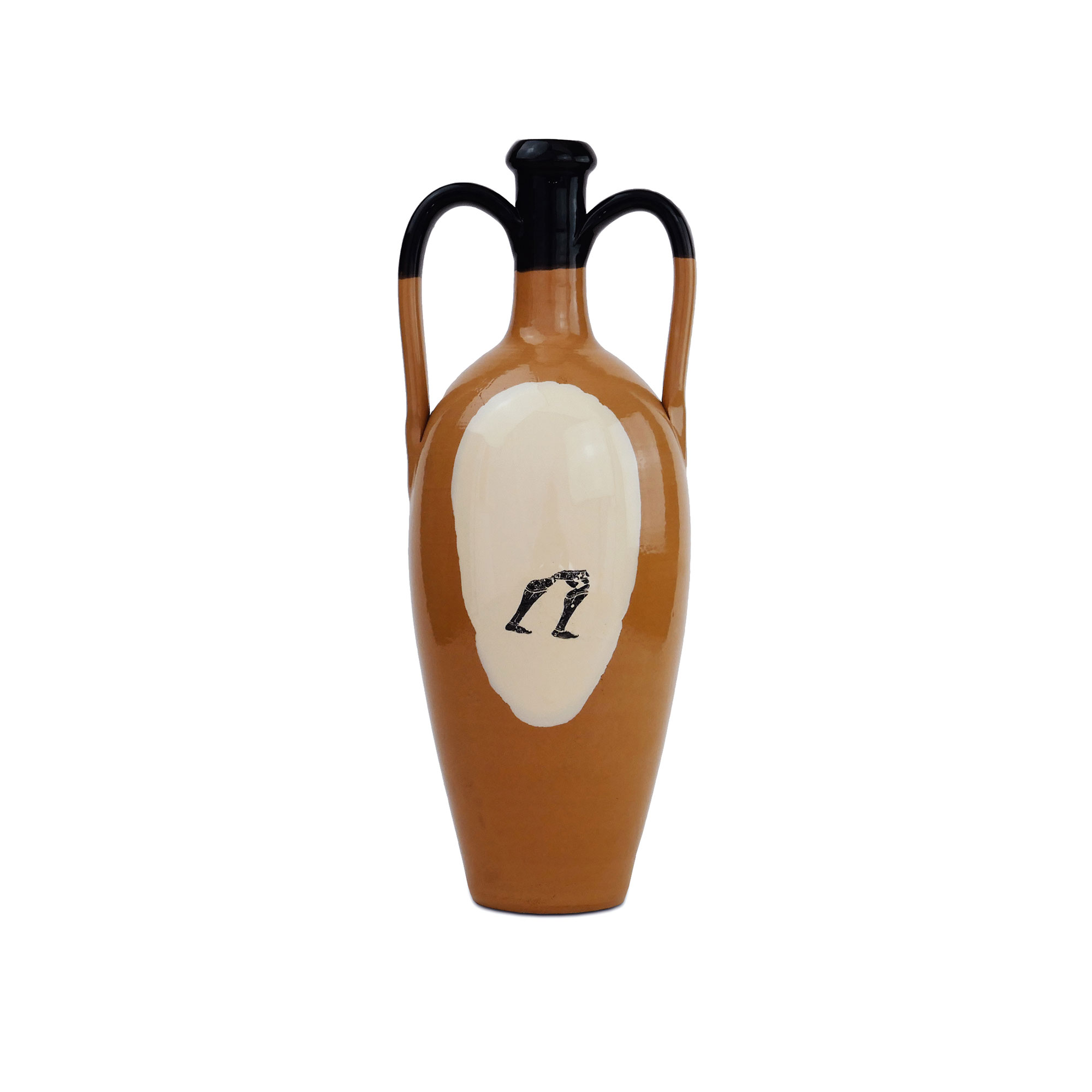 La serie di anfore “Magna Grecia” è costituita da pezzi unici, piccoli vasi in terracotta a due manici realizzati e decorati a mano attraverso varianti grafiche applicate con la tecnica della decalcomania. La collezione si contraddistingue per i riferimenti alla cultura dell’antica Grecia, attraverso porzioni decorative che riprendono la tradizione della pittura vascolare con riferimenti a personaggi e scene della mitologia.