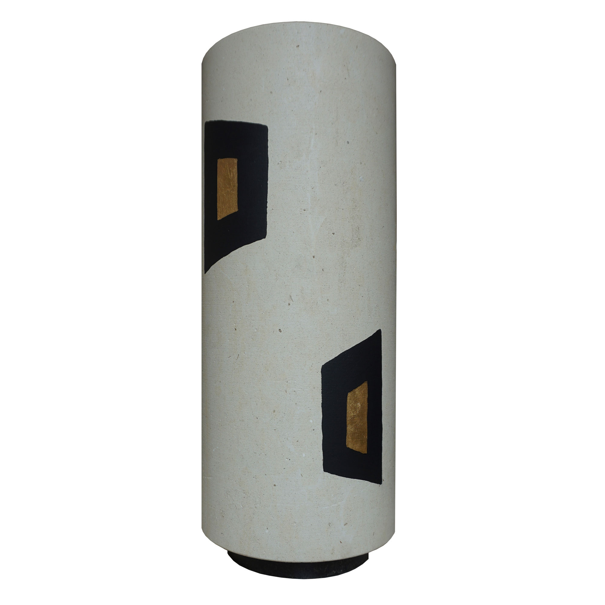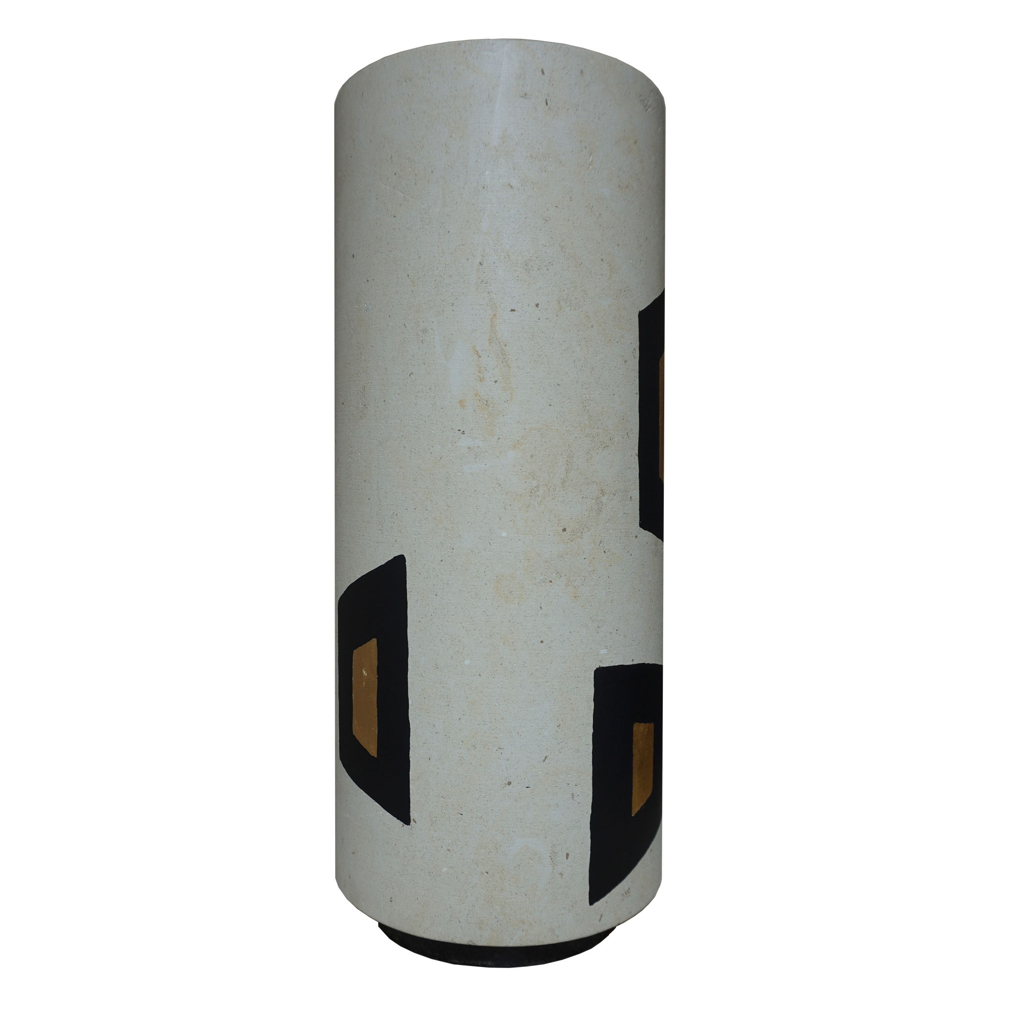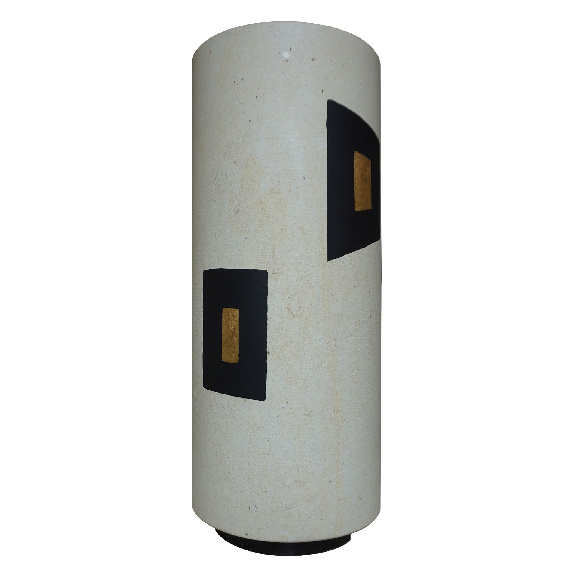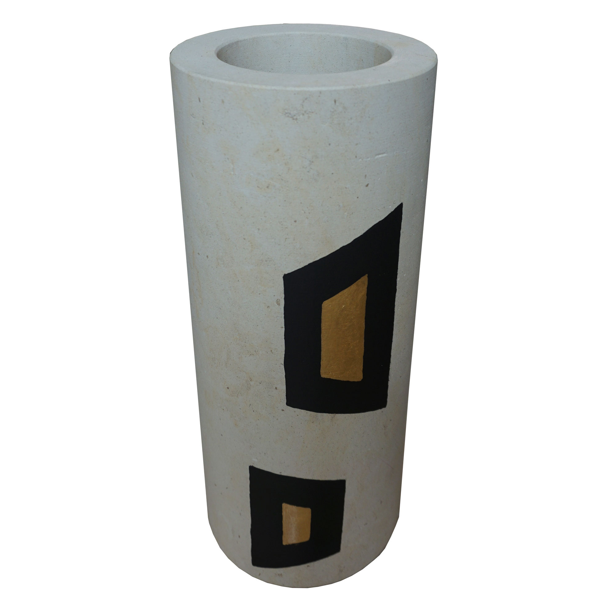 Descrizione: Il vaso è realizzato in pietra leccese con basamento in marmo nero. La decorazione con colore nero e giallo/oro  è realizzata artigianalmente.
